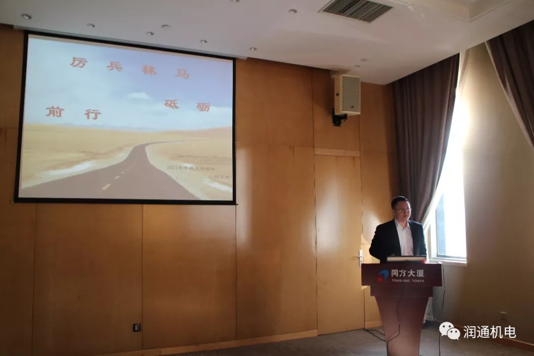 在這里,小編要對潤通的所有家人們說一句:你們辛苦了!總經理張樹全對過去一年的經營成果進行了匯報以及2018年工作規劃2018年1月12日,沈陽潤通機電設備安裝工程有限公司召開了2017年度年終會議。一、總經理張樹全關于2017年情況總結及2018經營計劃介紹三、項目組代表發言五、董事長于成斌總結發言項目組代表發言2018年對于潤通也是特別值得慶祝的一年,因為潤通已經10歲了。在這樣一個回望過去、企盼未來的時刻,小編不想用太多華