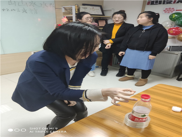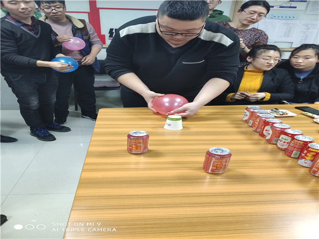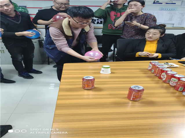 圣誕節如今在越來越多的中國人生活中扎了根,已經成為親人、友人相互祝福的美好時刻。在這個喜慶的日子里,公司特組織圣誕聯歡活動,讓員工在輕松愉快的氛圍里,感受到和諧、有愛的文化氛圍。紅紅火火隊與山山水水隊游戲一氣球吹紙杯要求每隊出4人,接力吹氣球,再松開氣球口,用氣球跑氣時的氣流吹動紙杯,通過障礙,途中紙杯掉落需重新開始,最先到達終點用時少的隊伍獲勝。每隊選4人,按順序站好,原地捏鼻子轉3圈后,捂住一只眼